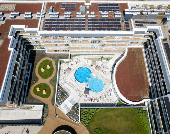 - Atrakce pro děti: vodní dětské hřiště se skluzavkami a bezpečné brouzdaliště.